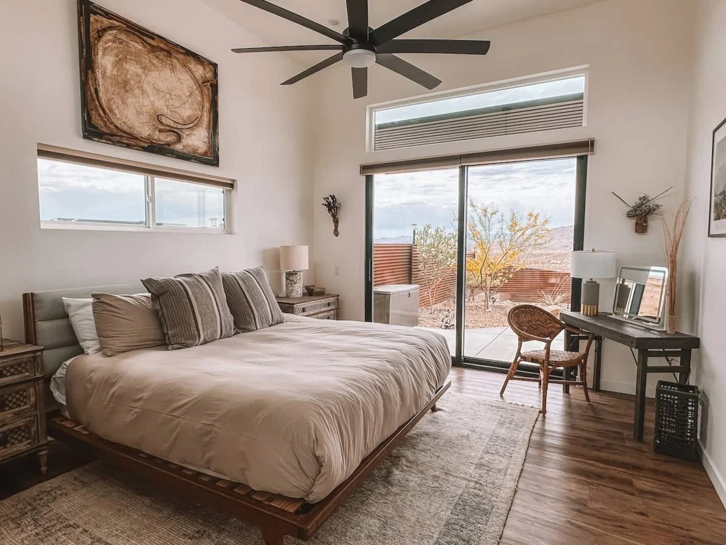 Primary Bedroom & Bathroom: This spacious room boasts a king-size bed, a private desk to work from home, a large walk-in closet, sliding glass doors to the pool area and an attached bathroom suite with a luxurious soaking bathtub and large shower.
