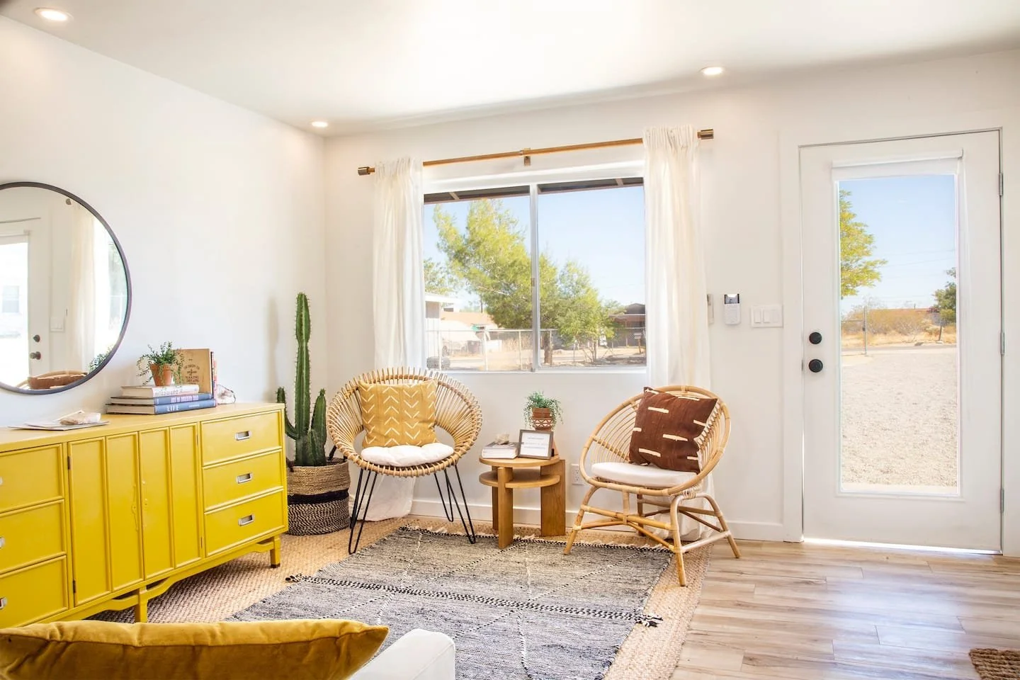 Nestled in the heart of Joshua Tree, you'll feel secluded in your own little private oasis with Bohemian chic furniture and modern upgrades to everything.