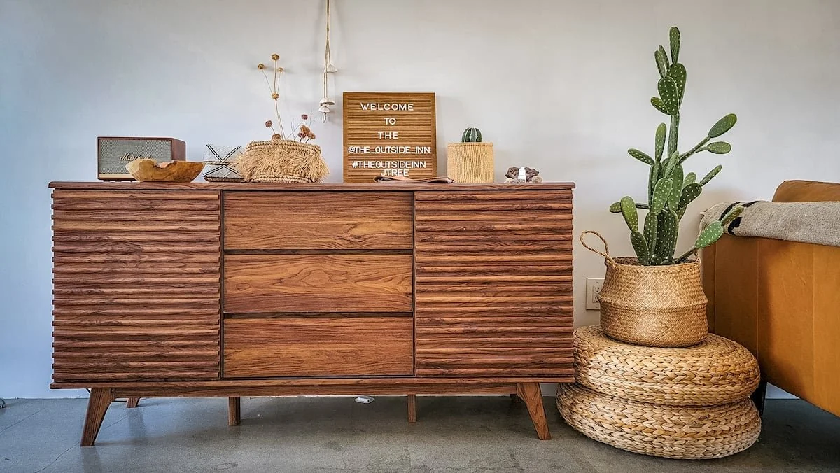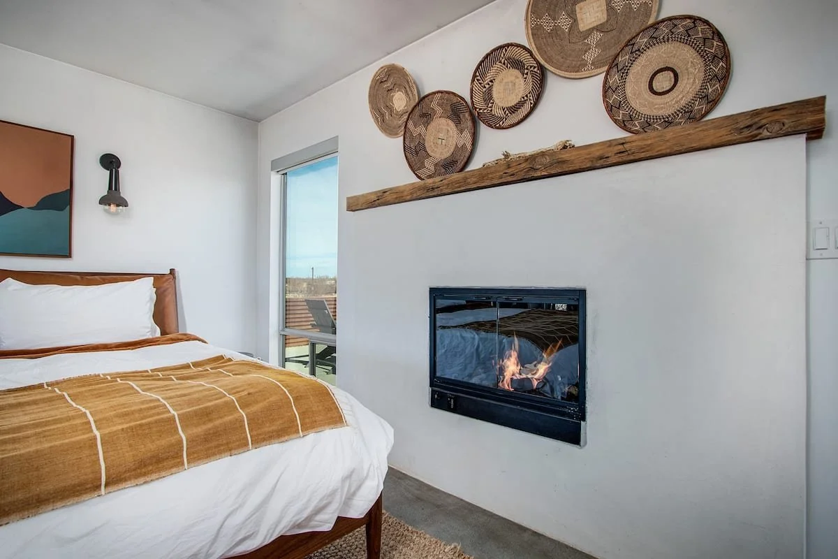 The Outside Inn is all about removing the borders between the inside of the home and the natural beauty of the outside world. An original water tower mural, by local JT artist Prescott McCarthy, waves you into the property as you drive down the road. This Homesteader's Cabin has been designed to fit the comforts of the modern day while still maintaining some of its original charm-- like polished concrete floors and a cozy fireplace.